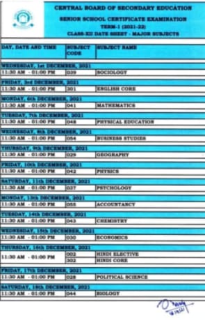 केंद्रीय माध्यमिक शिक्षा बोर्ड सीबीएसई ने सोमवार शाम 10वीं-12वीं कक्षा की टर्म 1 बोर्ड परीक्षा 2022 की डेट शीट जारी दी है. डेटशीट आधिकारिक वेबसाइट cbse.gov.in पर जारी की गई. सीबीएसई 10वीं-12वीं टर्म 1 बोर्ड परीक्षा नवंबर-दिसंबर 2021 के लिए निर्धारित है और टर्म 2 बोर्ड परीक्षा मार्च-अप्रैल 2022 में आयोजित की जाएगी.