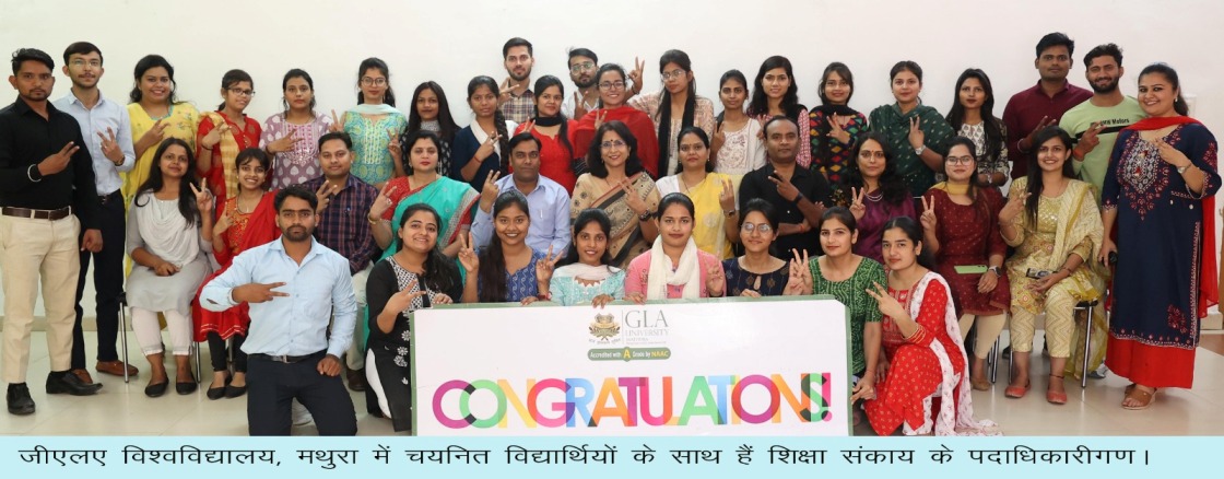 जीएलए का शिक्षा संकाय अपने विद्यार्थियों बेहतर और श्रेष्ठ शिक्षक बनाने की ओर काफी लंबे समय से जुटा हुआ है। पढ़ाई के दौरान विद्यार्थियों को प्रतिष्ठित स्कूलों में रोजगार मुहैया हो जाता है। उन्होंने कहा कि बीएड कर रहे विद्यार्थियों ने टेट और सुपरटेट में अच्छा स्कोर हासिल किया है। सुपरटेट में अच्छा स्कोर हासिल करने वाले विद्यार्थी आज परिषदीय विद्यालयों में अपनी सेवाएं दे रहे हैं।