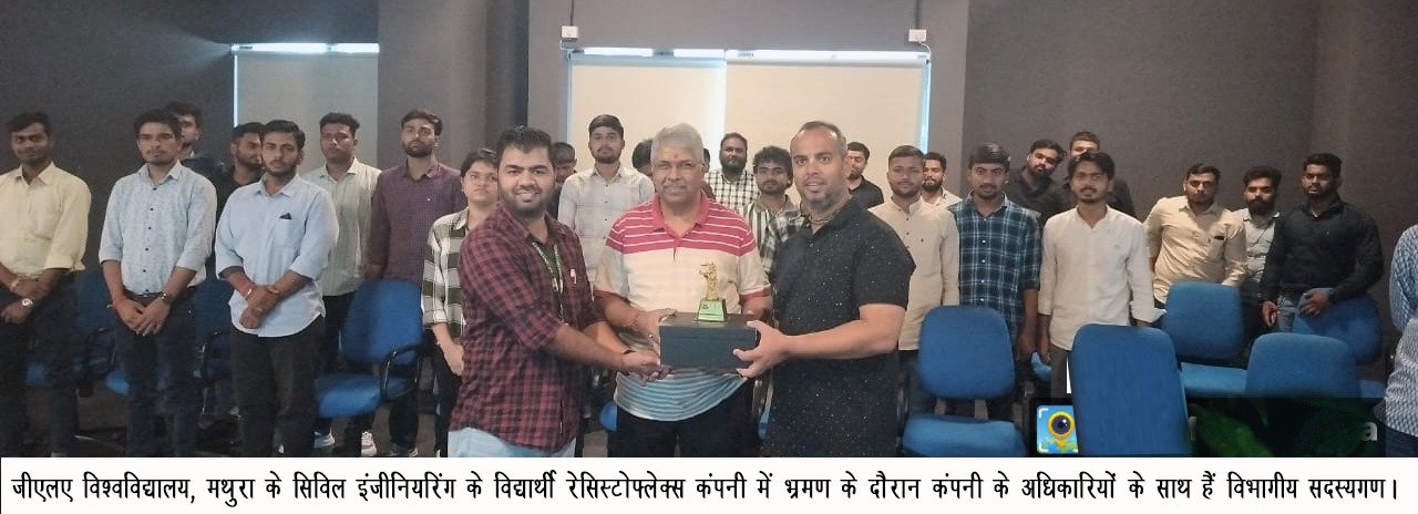 मथुरा : जीएलए विश्वविद्यालय, मथुरा का अगस्त माह से नया शैक्षणिक सत्र शुरू होते ही छात्रों के लिए औद्योगिक कंपनियों में भ्रमण की शुरूआत हो चुकी है। बीते दिन जीएलए सिविल इंजीनियरिंग के छात्रों ने नोएडा स्थित रेसिस्टोफ्लेक्स कंपनी का भ्रमण कर औद्योगिक व मशीन टूल्स की बारीकियां जानीं।